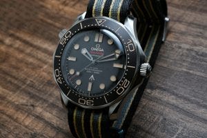 A close up look at the Omega Seamaster 300M “No Time To Die” Edition