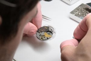 All of the watchmakers at Horage are very experienced, with many having previously worked in some of the bigger brands in the region. Laurent, the watchmaker shown here is one example, and he is the main guy who handles T2 watch assembly, which basically means that he cases up the assembled movement of the watch from a prepared parts kit as shown, adding the dial and hands and placing it in the case. Your Horage watch was most likely put together by him or any number of the engineers or watchmakers as everyone shares in the responsibility of final production.