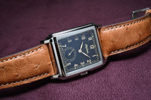 Taking this inspiration from the 1938 model, and the recently created tribute, the Alpiner Heritage Caree presents in an Art Deco style with a sector dial that was commonly seen in dial design in this era. Its rectangular stainless steel case measures in at 32.5mm in width, and 39mm in length, with a thickness of only 9.71mm, giving it elegant proportions.