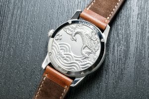 The first thing I noticed was the caseback, which was a huge surprise. On it was an embossed figure of an animal which I at first thought was a phoenix. Turns out that it is a “Kunpeng” – a colossal bird (Peng) of Chinese legend that has the ability to turn into an aquatic being (Kun).