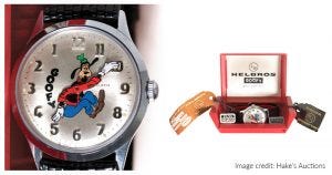 The first known I was able to find is the “Goofy Helbros” Original Issue Backwards watch from 1972.