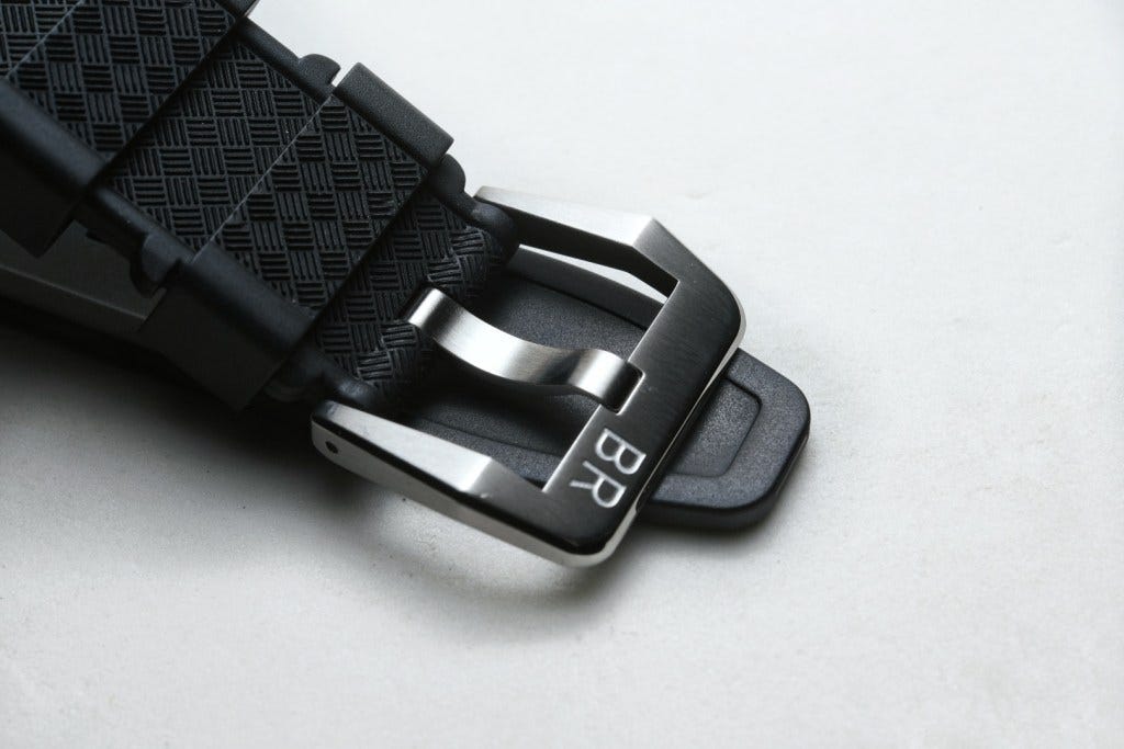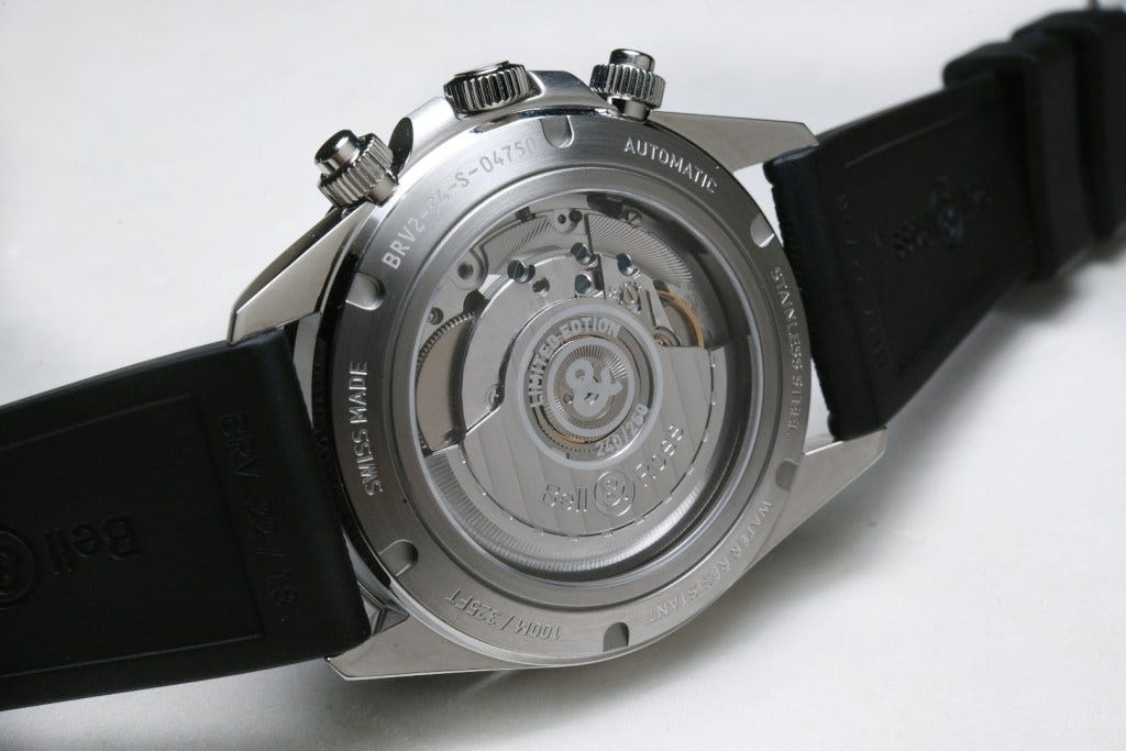 The rest of the watch will be familiar to those already familiar with the BR V2-94. It is a 100 metre water resistant chronograph with screw down chronograph pushers carrying the calibre BR-CAL.301 Automatic movement in a 41mm case. Additionally it comes in a black rubber strap that will enable you to swim without worry.