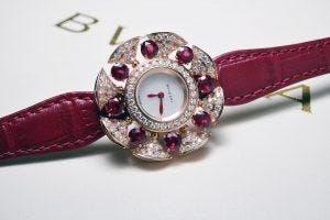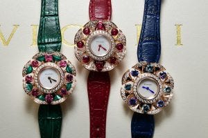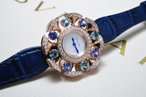 In particular, the sapphire model boasts an impressive number of gemstones, totalling approximately 7.8cts of diamonds and 3ct of blue sapphires. Topping these models off is a cabochon cut sapphire in the crown – a Bulgari signature.
