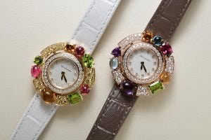 Having made its first debut in the Summer of 2022, two new models in this collection make their debut in a flurry of colour. The embodiment of the sentiment “Time is a Jewel”, the Allegra models unveiled at the LVMH Watch Week explode in a technicolour dream of all shapes and sizes. This new collection incorporates tourmaline, peridot, citrines and rhodolites in varying styles of cut that are a result in a kaleidoscope of hues that celebrate the joie de vivre.