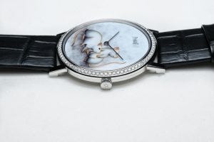 The Altiplano, Piaget’s most iconic watch is the backdrop for this artistic showcase and it comes with a case in white gold that holds the 2.1mm thick calibre 430P ultra thin hand-wound calibre, and a bezel set with 78 diamonds.
