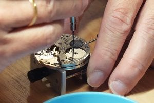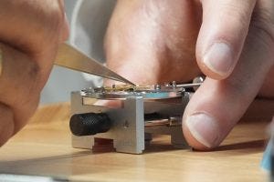 IHT 14: Installing the winding ratchet wheel. Note the extremely small screws
