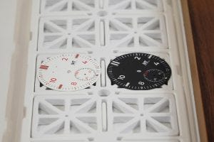IHT 19: These are the two dial options available, white with red highlights, or black with white highlights. You can choose your hand colors as well.