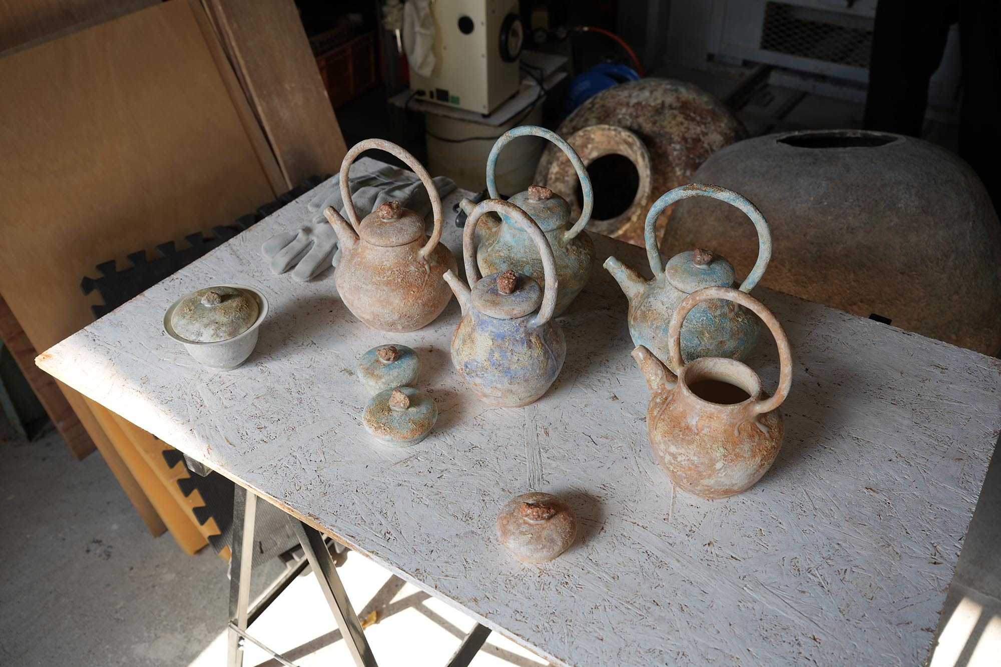 They work separate hours, each following the rhythm of their respective materials — clay for her, metal for him — but they are united by the same philosophy:
