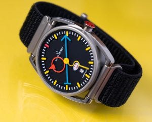 Le Regulateur Louis Erard x Alain Silberstein II is a new version of the regulator watch that was first unveiled in mid-2020. The time-telling functions of the watch are again separated into a large blue arrow hand for the minutes, a red isosceles triangle for the hours, and a yellow serpentine hand for the seconds indicator. This one is definitely more of a modern expression of the regulator, with the case holding much of the responsibility for its slightly futuristic look.