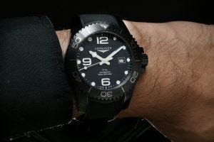 Sure, there have been bezel inserts in ceramic that were introduced fairly recently in the collection, but none have gone as far as the recently released HydroConquest Full Black Ceramic, a watch that I had heard about but never seen in person until today.