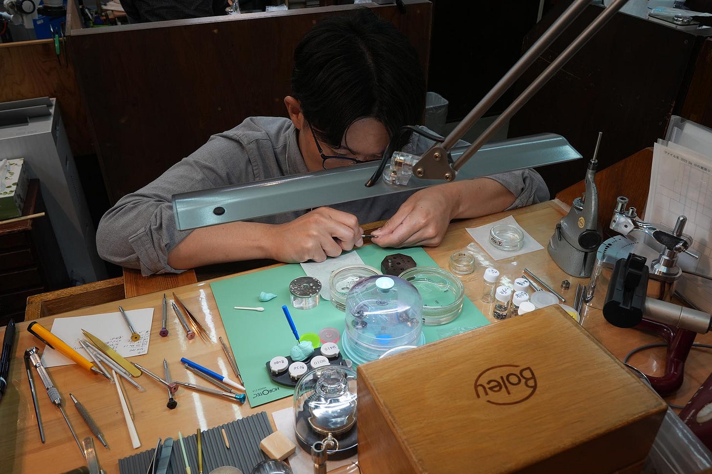 Masa: I always wanted to show the workbench to the public. Previous shops were too small or on the second floor. When I found this place 20 years ago, I moved instantly. I sit near the window. Kids look through the glass while I work. Maybe some will become watchmakers.