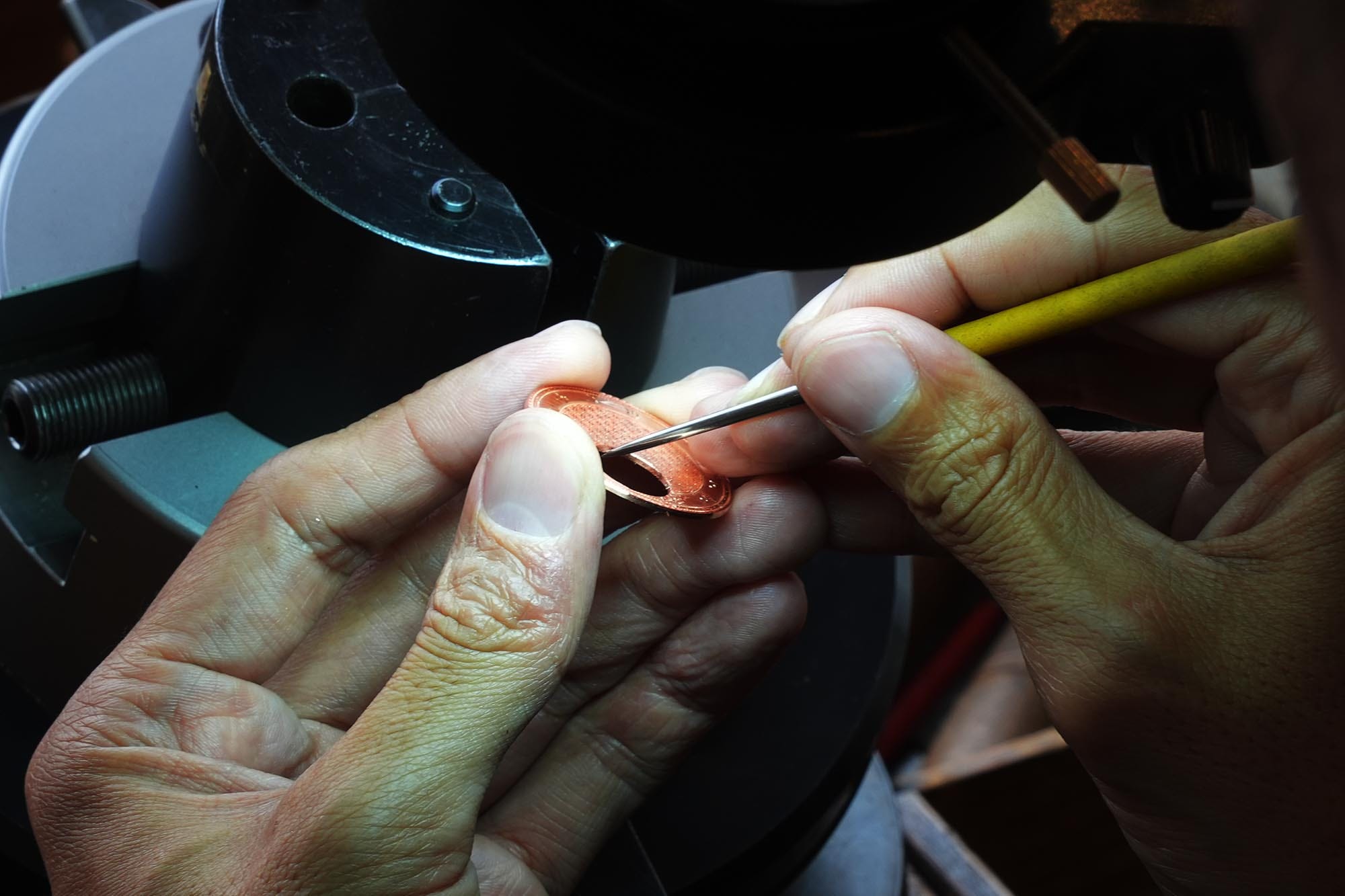 Designed entirely by Engraver K, who uses a special Japanese craft technique: