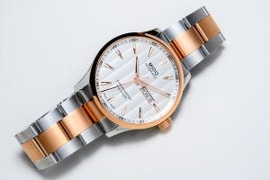 Then there are three variations on bracelet, one with a black dial and another in white, and lastly, one more in two toned retro glory (stainless steel and rose gold PVD) with white dial as shown below. These have oyster-style bracelets that match with the Multifort aesthetic.