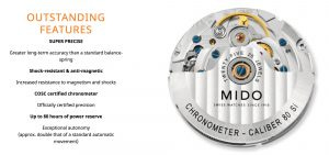Perhaps the most significant and lesser known fact about Mido as a brand is that it is one of the top chronometer watch producers in the world. According to statistics published by the COSC (Contrôle Officiel Suisse des Chronomètres), the Official Swiss Chronometer Testing Institute responsible for certifying the accuracy and precision of wristwatches in Switzerland, Mido held the position of fourth in 2012 and 2013, and fifth in 2014 and 2015 for most chronometers certified.