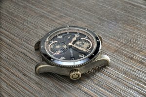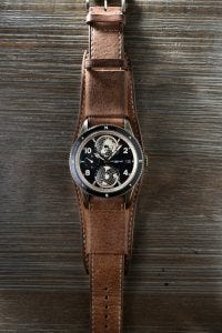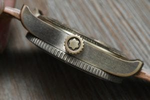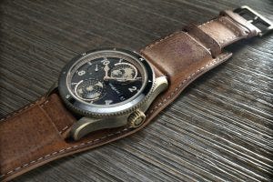 My favourite by far? This one you see here, bronze and full of patina and looking very nice on the brown sfumato calf leather Bund-style strap.