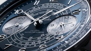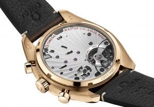 Manual-winding chronograph with column wheel and CoAxial escapement. Certified Master Chronometer,