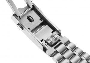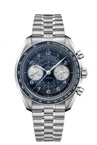 The stainless steel models are mounted on a bracelet similar in style to the Speedmaster Professional watches that made their debut in 2021, albeit with a quick-adjust system in the clasp with two positions, for when your wrists swell in the heat. Leather straps are also available for the other stainless steel models, with a vintage style, two-stitch tan colour calfskin available for the blue dial, blue alligator for the silver model, and a semi-perforated black racing-style calf-skin strap with red lining for the panda dial model. The Bronze Gold model comes on a vintage style, two-stitch chocolate calfskin on a Bronze Gold buckle.