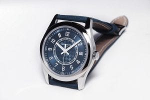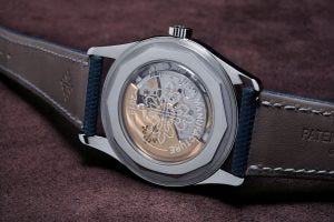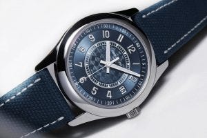Coming in stainless steel, a popular and relatively rare material for Patek Philippe, the watch is a riot of blue, coming with a blue dial and a blue strap. Yet because the dial comes in a variety of finishes and dial elements, and there is enough visual interest to offset the potential monochromatic presentation if it were simpler.