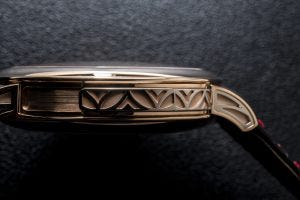 It’s the same Caliber R TO 27 PS movement here, and the lavishly decorated white gold minute repeater slide, engraved with a leaf pattern.