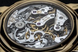 The 5303R was significant for having the minute repeater gong and hammers visible on the dial side (a first for Patek Philippe), and also for good measure, the rear of the tourbillon. What this meant was that the entire raison d’etre of the watch was visible for all to see and enjoy without the owner taking the watch off. Effectively, because of the view of the complications, there is no dial, but why would you want one in any case?
