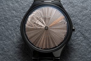 The True Thinline Deep Web Limited Edition is a marvellous case in point, utilising two discs under the sapphire crystal, with the printed metallic coloured spider web patterns on each creating an illusion of hands moving across the dial.