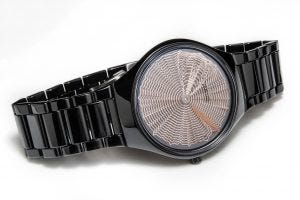 The Rado True Thinline Deep Web in polished black high-tech ceramic with innovative turning disc hands is available in a limited edition of 1,001 pieces, each with a special case back engraving.