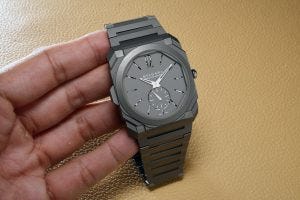 The Octo Finissimo bracelet however, is something else, and I actually prefer it over the leather strap. In fact most clients who get it on the leather strap return to buy the bracelet from the boutique. Today 80% of the clients who buy an Octo Finissimo do so with the bracelet and that says something about how good it is.