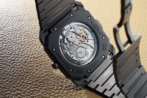 Because of this, we realized that trying to make every Octo Finissimo in our collections in the same way, with 100 metres water resistance was not the right approach. Instead, each model has to be done in its own way, exploring the possibilities in terms of materials and finishing.