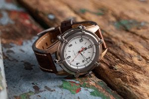 For our straps, we use old Swiss military leather. For the case, we use bronze because it is a renewable metal that can be melted again and again and reused. On our automatic model, we use a vintage movement, entirely rejuvenated with new decorations, and with new parts swapped in if the old ones are bad.