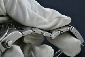 Yes, it is bigger than a 40mm sized professional Rolex from a width and height perspective but not overtly so and I found that it didn’t encumber me as much as I thought it would. In my experience, watches bigger than 40mm on a stainless steel bracelet have to be tried on first before buying as it is easy for the weight of the watch head and bracelet to venture into uncomfortable territory. Typically I look for watches on a bracelet that are wider than 43mm to be made of titanium in order to avoid this.