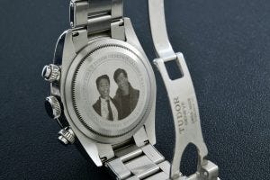 The Tudor modifications to the movement include a free sprung versus the original Breitling regulated balance, and modified 30 minute chronograph sub-dial to 45 minutes.