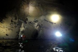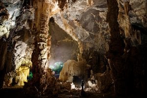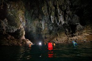 So there I was, floating in a dark cave somewhere in Vietnam, feeling beneath the water line for unseen dangers in the form of jagged rock that could injure me with any untoward, flailing movements. Above my helmeted head, a five storey cavern with a ceiling of ancient stalactites, dimly seen in the darkness with only my torch to light the way.