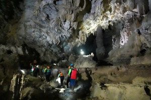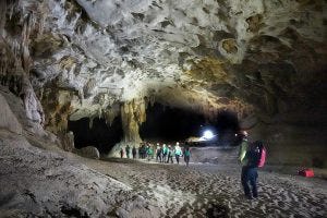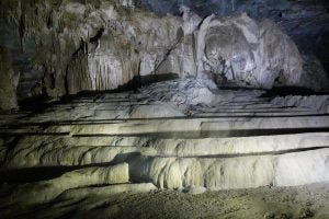 As these caves move upwards due to active shifts in the tectonic plates, the water continues to find lower ground, carving new caves in the process. That’s why the river caves in the Tu Lan cave system such as Ken Cave and Tu Lan Cave are very young, only about 3 million years old, and why the higher, dry caves (dry Tu Lan and Hang Tom Cave) are much older, and date to around 5 million years old.