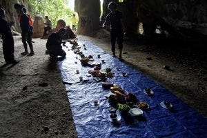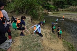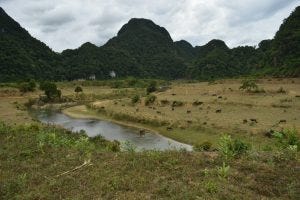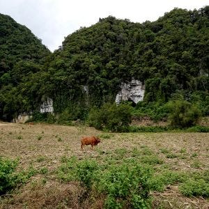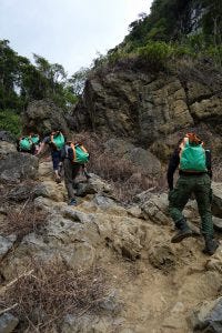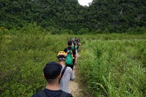 The various caves of the Tu Lan cave system are not accessible by road, as I had initially and naively thought. Instead the journey requires a 2.5 km trek starting at base camp towards the point where one heads up (30m) and down (100m) a relatively small mountain to Hang Tom cave for lunch, then to another longer and far treacherous trek up and down Mango mountain, so named for the large mango tree that marks the peak. We were not given the height for this second mountain, except that the distance for this section totalled 3 km. They probably didn’t want to scare us.