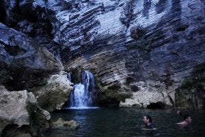 Challenges get even more pronounced when you consider the swimming, which requires the wearing of life jackets and big waterproof backpacks. It was possible to move forward in the water, but it was awkward. Also, swimming in the cave was not as straightforward as swimming in a pool, as there were strangely shaped rocks underwater that one had to be careful about. Basically gentle movements were required while swimming so as to avoid smashing oneself into underwater rocks. Along the way, some of the people swimming in front of me started calling out to those who were following to warn them about rocks in the water ahead. I dismissed these warnings only once, for when I came to the rocks I was warned about, I realised that they were shaped so oddly that I wondered how it was possible to contort my body to swim around them.