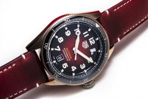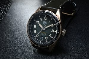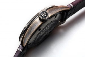 Lastly, the case is in bronze, a choice of material that fits into the vintage styling overall, and that helps to give the watch its own patina and character after being worn for some time. This example here, has had some time on the wrist and so has developed a very attractive patina on the case.