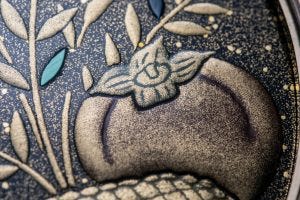 The result is a mesmerising 3D effect that is a joy to look at, with the shimmering previous metal dust against the depths of the black lacquer.