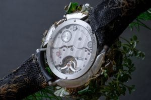 It’s a few days before SIHH once again, and it’s time for yet another statement piece from H Moser and Cie, this time coming in the form of the Moser Nature watch. Yes, you’re looking at a Moser watch with live plants growing out of it and it’s a unique piece in steel adorned with “succulents, moss, mini Echeveria, cress, spiderwort and onion sets, with a dial in natural mineral stone and lichen from the Swiss Alps, and a strap made from grass.”
