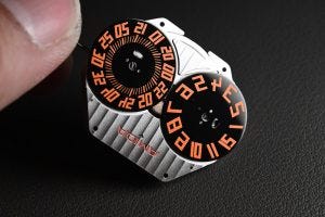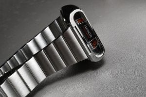 The modern day Amida of 2024 is headed up by enthusiast Matthieu Allegre, his partner Clement Meynier, and engineer Bruno Herbet. The story goes that one of Allegre’s friends acquired 40 Amida Digitrend watches at an auction, and when Allegre held one in his hands, it was love at first sight. The new 2024 Digitrend is machined out of 316L stainless steel, with slight improvements in its finishing and contours to give it a sleeker profile in line with modern manufacturing. The time display echoes the original, with its retro design, and the caseback is partially visible, with the “Take-Off Edition” featuring a view into the balance bridge, as well as a commemorative engraving.