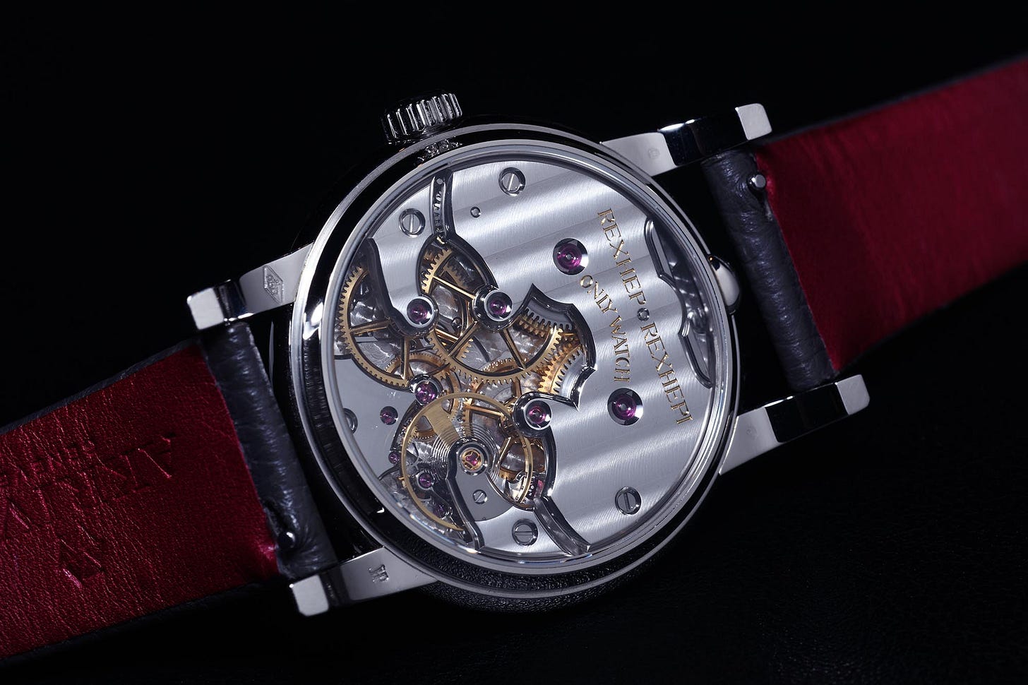 The watch also features an incredible amount of fine finishing on the movement – as a prototype, it is finished excellently with manually executed bevels, many of them internal bevels.