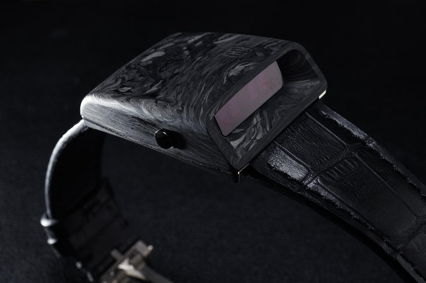 Titanium pushers are used to activate the display – just like in the 1970s, LED displays still utilise a lot of power, and the pushers activate the display on demand. Undoubtedly, this is a great way to get vintage vibes from the 70s, whilst retaining an essence of modernity in the form of the case.