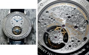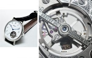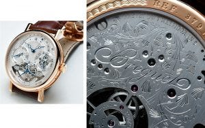 Look at the pictures of various Breguet Tourbillon watches below, and spot the words “Brevet Du 7 Messidor An 9” on the movements shown.