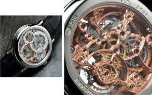 His motivation was simple- to improve the accuracy of his pocket watches by compensating against the effects of gravity on the hairspring. Given that pocket watches spent most of the time in an upright position in their owner’s pocket, the goal of the tourbillon was to eliminate rate errors by having the hairspring turn on itself continually, cancelling out the effects of gravity.
