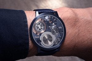 The Piaget Altiplano Ultimate Concept began its life in 2018 as its namesake suggests – a concept watch, demonstrating novel construction techniques to achieve a thinness of 2mm. The case itself is used to mount the components of the watch, as demonstrated in the 910P. This essentially removes 3 parts from the watch, the caseback, the mainplate of the movement and the case itself. An innovative cobalt alloy is also used as the case and mainplate of the watch due to its rigidity (precious metals proved much too malleable to be used in an endeavour such as this).