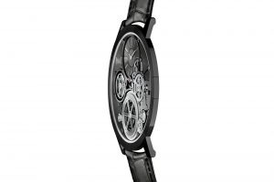 Add to this a mainspring barrel does away with a cover or drum that is mounted on a single ceramic ball bearing for 40 hours power reserve, as well as a flat telescopic crown that substitutes the conventional sliding pinion clutch and crown wheel for a single, “infinite screw”, that is connected to a patented ‘staggered’ stem.