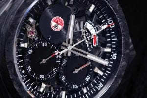 These were my thoughts when I was shown the DEFY 21 Carl Cox, a carbon cased beauty on a red rubber strap carrying the super fast El Primero 9004 automatic chronograph movement that has the central chronograph hand making one revolution every second. It’s enough to make your heart beat faster every time you start it and to also realize that Zenith is the premier chronograph brand of our times, running with a destiny charged from having introduced the high beat El Primero running at 36,000 vph in 1969, a monumental achievement then, and further improved upon today with the Zenith Calibre 9100 running at 129,600 VpH (18 Hz).